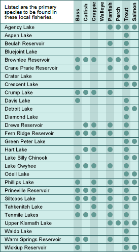 For a detailed list of primary fish species in OR, plus state fish records, see the list below.